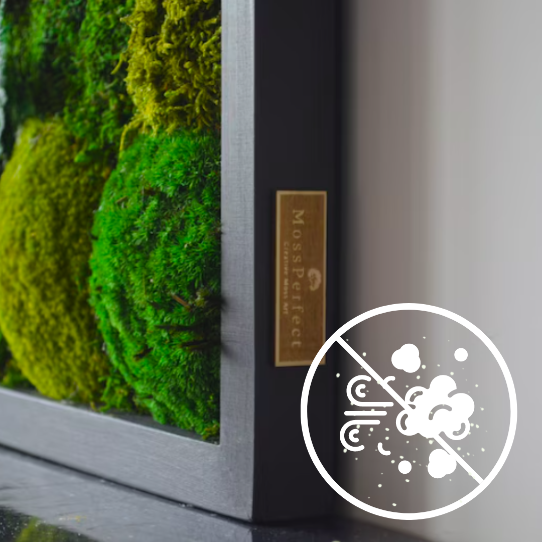 Moss has anti-static properties, meaning it doesn’t attract dust. Therefore, you don’t need to regularly wipe it with a cloth to remove accumulated dust.